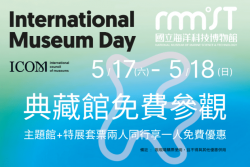 國立海洋科技博物館為迎接國際博物館日,將於明(17)日至5月18日推出入館優惠與系列精彩活動,邀請民眾在知識與趣味中感受海洋魅力,歡度屬於博物館的節日。海科館表示,明起至18日,主題館加特展套票推出「兩人同行、一人免費」優惠,以及典藏館全面開放免費參觀,本周六、日不但讓民眾以最超值的方式探索館內豐富展覽也可零距離接觸珍貴典藏與海洋知識。入館也可分別享有限定活動, 18日更有一場國際級的...... [閱讀更多]