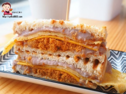 桃園平鎮美食-日日朝食早午餐-粉紅小屋看火車,芋泥肉鬆吐司有新意