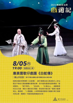 【News586/記者黃誌寬報導】新竹市政府在暑假舉辦2023風城藝術節活動,第三場演出,將於8月5日(六)晚間7時在香山天後宮開演,邀請唐美雲歌仔戲團演出浪漫民間傳奇《白蛇傳》。節目開演前還有捐發票換好禮、超夯公仔扭蛋兌換活動,邀大小朋友共度美好週末夜晚。 唐美雲歌仔戲團表示,《白蛇傳》是民間發展出來的傳說故事,在久遠的歲月裡,情節逐漸生枝發葉,融入各個時空裡庶民的情感思...... [閱讀更多]