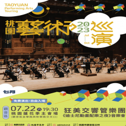 【News586/記者彭慧婉報導】桃園市政府文化局為協力觀音桃園蓮花季,因應暑期民衆出遊熱潮,「桃園藝術巡演」活動特邀請到「狂美交響管樂團」,於7月22日(星期六)晚間7點30分在桃園蓮花季主會場(觀音區金華路與新華路交叉口),辦理《迪士尼動畫配樂之夜》音樂會。 「狂美交響管樂團」為桃園在地之傑出演藝團隊,為國內演出及創作能量最爲豐沛的樂團之一,團員皆為畢業於海內外各音樂學院...... [閱讀更多]
