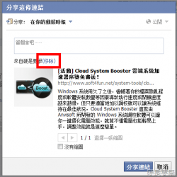 分享貼文的情況有很多,但有時候會不希望讓原 PO 的名字被帶出來,一般的作法是複製連結網址後在另行貼到塗鴉牆上,這個方法雖然簡單,但是必須打開網頁才能複製該連結的網址,其實 Facebook 在分享視窗上面做了一個小小的連結,點一下就可以把原 PO 名字移掉,別人就看不出來你是從哪裡分享而來。 ▲ 分享連結時,在「來自 XXXX」右邊會看到移除的連結,點擊之後分享連結就不會出...... [閱讀更多]