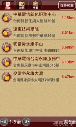 黃頁網路化之後,家中那本厚厚的電話黃頁翻閱率越來越低,因為網路上都可以找得到。「hiPage 搜Go!」這款App把網路黃頁公能再強化,透過手機定位功能讓App可以自動顯示所在位置附近的資料,不用像翻目錄那樣從南翻到北。此外,「hiPage 搜Go!」還整合旅遊景點、好康挖挖挖、買屋租屋和 CHT WiFi 查詢功能,讓簡單的黃頁變出更多實用的功能,常有翻黃頁電話部的需求嗎?把...... [閱讀更多]