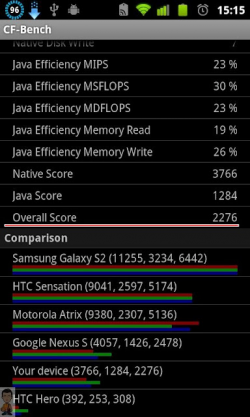 XDA的一位網友就寫出了一個強調專為多核心設計的效能測試程式,叫做CF-Bench,有免費以及付費版,免費版會有廣告。程式名稱:CF-Bench檔案大小:87k下載連結:https://market.android.com/details?id=eu.chainfire.cfbench截圖與簡介:點「Full Benchmark」測試中...測試結果出爐,測試機型為Google Nexus S。分...... [閱讀更多]