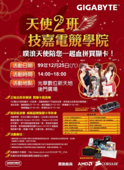 技嘉噗浪天使二班網路選拔賽優勝名單公布耶誕夜未眠,技嘉電玩天使化身光華一日店長,送你幸運福袋2010年12月7日【台灣、台北】GIGABYTE技嘉科技與美商超微(AMD)共同舉辦的「電玩天使」二班選拔賽結果已經於「技嘉電競學院」出爐囉!12月25日聖誕節當天,主辦單位將在光華數位新天地進行「一日店長」活動以及技嘉噗浪天使二班頒獎典禮,由網友票選出的五位美眉,將身著可愛性感兼具的耶誕服飾,分別於活動...... [閱讀更多]
