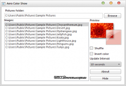 之前曾與大家分享一款視窗顏色變色龍的軟體【Aura Beta 3】,會依照使用的視窗或是IE自動變色,在Windows7的使用上有多變的感覺;今天這款軟體【Aero Color Show】主要的功能也幾乎雷同,不過是指定顏色的變換,依據圖片的顏色風格來決定視窗的透明顏色。 軟體使用非常的簡單,選取一個有圖片的資料夾,會載入資料夾內的所有圖片,依據圖片將視窗變換成不同的顏色,設定...... [閱讀更多]