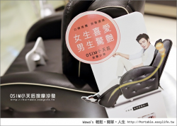 一直以來我算是 OSIM 的愛用者吧!我曾經買過初代的美腿魔法師,也買過纖體馬師,老婆擠奶不順暢時也是去買他們家的按摩棒,說是忠實用戶應該不為過。今年 OSIM 推出了一台 uDiva 小天后按摩沙發,在外型上相當受到歡迎,在使用上可以是居家的小沙發,也可以是一張舒適的按摩椅。傳統按摩椅又大又佔空間,沒有按摩的時候躺在上面也不是很舒適,OSIM 小天后按摩沙發完全解決了這樣的困擾,真的...... [閱讀更多]