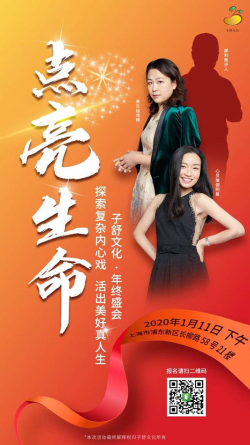 點亮生命 子舒文化年終盛會 1月11日開幕 探索複雜內心戲,活出美好真人生 「你知道嗎?我每天都在演戲。我的角色有很多面:子女、父母、領導、下屬、老師、家長……我每天在不同的身份裏面穿梭,演完爸爸裝孫子,很累但不敢叫苦,怕沒面子,怕被世界拋棄。沒有一個角色定義我,有人懂嗎?」 「 又到年底,除了年會就是論壇,兩個主持,幾個嘉賓導師,發言談話,打打雞血,講真讓我...... [閱讀更多]