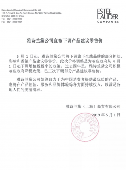新京報訊(記者 徐晶晶)5月1日起,雅詩蘭黛公司將下調旗下全線品牌的部分護膚、彩妝和香氛產品建議零售價。據了解,這是該品牌在近幾年內第四次下調部分產品的建議零售價。 圖片來源/雅詩蘭黛官方微信號截圖 此次價格調整是為響應中國政府從4月1日起下調增值稅稅率的政策。作為雅詩蘭黛集團的旗艦品牌,雅詩蘭黛從5月1日起部分護膚及彩妝產品價格有所下調,其中紅石榴高光水400ML從59...... [閱讀更多]
