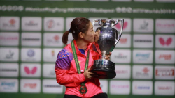 劉詩雯親吻獎盃。截屏圖 新京報訊(記者 孫海光)3進世乒賽決賽終奪冠,劉詩雯用了10年時間證明自己。今晚在布達佩斯捧起女單冠軍獎盃后,劉詩雯當時有點蒙。談及過去這些年艱苦的日子,劉詩雯稱有過很長時間的低迷,自己也曾放棄過。 決賽前,劉詩雯定了一個目標,「希望可以暢快打一場,不要再給自己留下遺憾了。」 如劉詩雯所願,她今晚和陳夢打了一場經典的比賽,第5局更是打出了11比...... [閱讀更多]