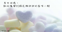 文/來看yun 有些回憶,就好像聞到棉花糖甜甜的香味一般,美好的令人不自覺的在臉上勾勒一抺微笑; 有些回憶,就好像風捲殘雲,風過無痕,只剩隱隱約約的,沒有任何深刻的感受; 有些回憶,就好像在心口劃上了一道隱形的傷口,以為好了,其實並沒有,偶爾思及,仍然會痛得令人眼眶泛紅或者瞬間流下眼淚。 我們在現在與未來不斷累積一個又一個無論是美好的或者是不深刻的回憶,我們卻又難免被不開心的、...... [閱讀更多]