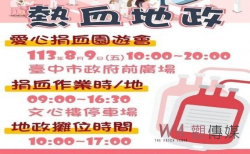 觀傳媒 | 中市地政局攜民間辦愛心捐血園遊會 響應公益8/9邀民挽袖捐熱血