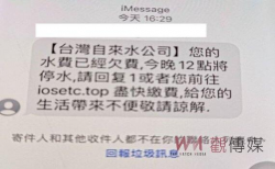 觀傳媒 | 歹徒簡訊釣魚詐騙恐嚇停水 台水籲用戶勿上當