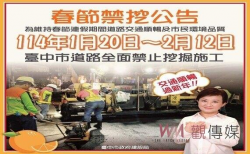 觀傳媒 | 為維護交通順暢 中市春節期間道路禁止各項挖掘施工行為