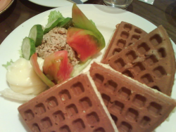 吃鬆餅一向只選擇甜蜜蜜口味的我 在有次意外的機緣下 因為有肚子餓的友人 想吃鹹的填肚子 就點了米朗琪的鮪魚鬆餅 搭配上蕃茄 美乃滋 小黃瓜 美生菜 鬆餅竟然也能擔任主食的角色 很令人驚豔 也打破了我對鬆餅一定是甜食的想法 用餐時配上一杯 ...... [閱讀更多]