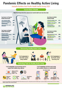 香港特別行政區 - Media OutReach - 2021 年 10 月 18 日 - 全球領先的營養品公司康寶萊今天發佈了2021年亞太區健康習慣調查結果,顯示亞太區六成消費者表示其目前的身心健康狀況不理想(「一般」或「差劣」)的人遠超於認為自己健康「良好」、「非常好」或「優秀」的人。與一年前相比,亞太區的消費者對於其健康狀況好壞持不同意見。 對於在過去12個月內身體健...... [閱讀更多]