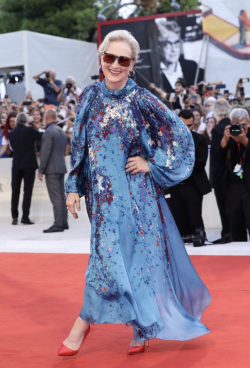 梅姨 Meryl Streep 帶著新作《洗鈔事務所》來到威尼斯影展,希望她可以一舉拿下她獨缺的威尼斯影后,來個大滿貫! 在首映紅毯上,她穿了 Givenchy 2019秋冬的禮服,盡顯自在的優雅;好喜歡這件猶如潑墨感的花朵設計,紅色鞋子配得很好(雖然有點被紅毯吃掉);耳環的搭配更好! ...... [閱讀更多]
