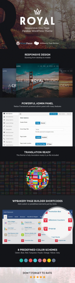 Royal – Responsive One Page Parallax WordPress Theme 是一款相當簡潔與具有現代感的 WordPress 主題。它內建非常多出色的功能選項,能讓你以非常靈活的方式進行網站的調整,非常適合用來建立企業網站,適用於任何類型的產業類別。 Royal WordPress 主題採用 100% 響應式網頁設計,且具備 Retina 顯示,讓你的...... [閱讀更多]