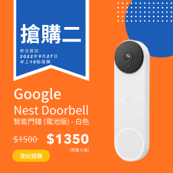 【新品消息】【搶購二:27/9】Google Nest Doorbell 智能門鐘 (電池版) | 香港