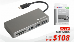 【價錢】$108 平買 Verbatim USB-C 3.1 Hub 連讀卡器 | 香港 |