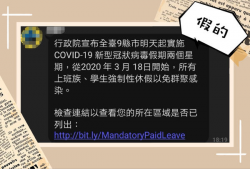 假的!收到「行政院宣佈全台九縣市明天起停辦停課兩週」是假的!!!