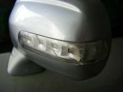 但是美中不足的是車子的左邊後照鏡,之前在路上奔馳時,遭到來車的碰撞而導致後照鏡上的燈殼破掉了...