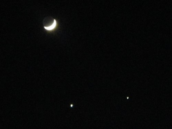 今天晚上下班從停車場出來的時候,被天空的月亮以及左上角明亮的一顆星所吸引,認真再瞧一眼時,發現月亮的左上方還有一顆比較小的星星,這樣的畫面讓我相當興奮,因為這個場景彷彿天空出現了一個大大的笑臉,於是立即停下車,捕捉這個可愛的畫面......據說這是"金星+木星+上弦月"所構成的可愛景象,我 18 年來,第一次看到這樣的景象呢!! (18 年? 咳咳.....有點心虛)。(這張圖取自天文台網站,點這...... [閱讀更多]
