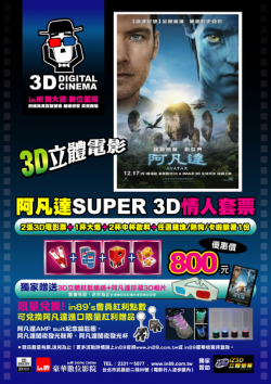 相信大家已經看過了n個關於阿凡達3D電影的影評了,其中我看過最經典的一段影評:「你可以不喜歡阿凡達,但你不能不去看阿凡達」,可見這部影片真的是好評到了爆炸的程度!現在大家輕鬆一下,看一看網友轉貼昨天的全民最大黨之「阿帆達」(我快笑死了) 還有插播一個訊息,那就是in89影城購買阿凡達套票的人,就可以得到紅藍眼鏡&限量電影立體套卡一張,相關的消息可以參考以下網址: ...... [閱讀更多]