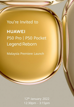 華為旗艦手機 P50 Pro 以及首款翻蓋直屏手機 P50 Pocket 確認將在1月12日正式在大馬發布。 這兩款手機在不久前已經在大馬舉辦了預熱 Sneak Peek 展示,讓許多大馬粉絲們激動,可惜的是沒有確切的本地發布日期,現在終於有了! 圖源: MobileFokus Huawei Malaysia 已經向媒體發出邀請函,參加定於1月12日的華為 ...... [閱讀更多]