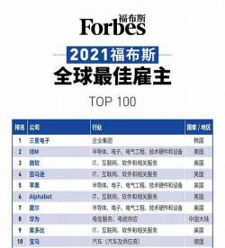 福布斯2021全球最佳僱主榜:三星全球第一,華為中國第二!