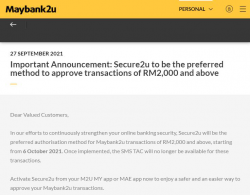 Maybank 轉賬超過RM2000不再支持SMS TAC驗證!