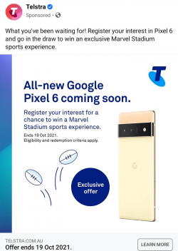 越來越多的曝光和暗示指出,谷歌倍受矚目的下一代旗艦手機谷歌Pixel 6系列,將在10月19日發布! 除了谷歌自己的社交平台上放出的宣傳圖片出現了10月19日的字眼之外,之前已經有幾個爆料者也泄露過這個日期。 現在,澳洲最大的電信公司Telstra也放出了預熱,預示著這個日期基本可以肯定是真的。 Telstra在廣告上明確提到了「全新的 Google...... [閱讀更多]