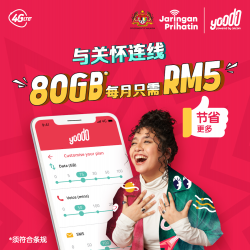 Yoodo Jaringan Prihatin配套:每月80GB Data只需RM5!