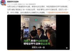 (圖/翻攝微博) 前總統馬英九28日來到南京中山陵拜謁國父孫中山,參觀中山紀念館時,導覽員提到中日甲午戰爭戰敗。馬英九建議,展覽板上要加一句「割讓了台灣」。馬英九哽咽說道:要寫上「去年今日割台灣,四百萬人同一苦」,你可以想像,當時台胞是多麼地痛苦、多麼地遺憾,這個地方要加進去,否則好像覺得無關緊要,很嚴重。 馬英九引用抗日英雄丘逢甲詩《春愁》「四百萬人同一...... [閱讀更多]