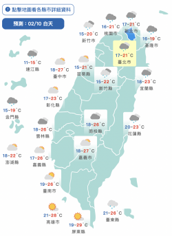 記者黃宣瑄/綜合報導 中央氣象局表示,今天(10)日東北季風增強,除東半部有局部短暫雨外,北部的降雨機率會再度提高,局部地區也有些短暫降雨,中南部仍為多雲到晴;北臺灣高溫稍降,約在21、22度,其他地方和昨天類似,高溫在24~29度,南部內陸地區可以來到30度左右,低溫方面,中部以北約15~17度,其他地方在18~20度,中南部日夜溫差及白天南北溫差都大,請留意溫度變化請適時調整穿...... [閱讀更多]