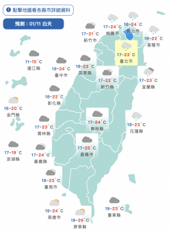記者黃宣瑄/綜合報導 中央氣象局表示,今(11)日東北季風減弱,氣溫逐漸回升,不過早晚仍稍涼,各地低溫約17~19度,白天高溫普遍可以來到22~25度,近山區或河谷會更高一些,中午前後感受較為舒適溫暖,日夜溫差稍大,請留意溫度的變化。 ▲上半天東半部及基隆北海岸降雨機率仍高。(圖/中央氣象局) 降雨部分,東半部地區及基隆北海岸出現局部短暫雨的機率仍高,至於西半部由於上...... [閱讀更多]