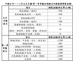 焦點時報 | 中鋼112年元月份月盤及第一季季盤全產品基價平均調降0.83%