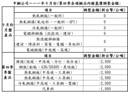 中鋼10月份及第4季全產品基價平均調降2.64%