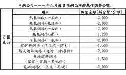 焦點時報|中鋼公司 111 年八月份月盤產品基價平均調降5.61%