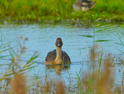 【今傳媒/記者李祖東報導】台灣稀有冬候鳥「白秋沙」再度現蹤高雄茄萣濕地!雌鳥頭上及後頸栗褐色,眼先有黑斑,背麵灰褐色,吸引不少鳥友聚集拍攝及觀賞棲息情形。工務局局長楊欽富表示,茄萣濕地鳥況紀錄不斷進步,顯現市府投入茄萣濕地保育生態成功。再度到訪的「白秋沙」及「寒林豆雁」,讓人感受茄萣濕地魅力無窮,也讓鳥迷們更期待下一波「嬌客」的到來。 白秋沙又名小秋沙、斑頭秋沙鴨,繁殖...... [閱讀更多]