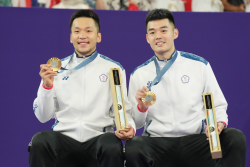(圖/體育署提供) 我國羽球男雙選手李洋、王齊麟於台灣時間4日深夜在巴黎奧運男子羽球男雙決賽,為台灣拿下本屆奧運第1面金牌,完成連續兩屆奧運衛冕的空前成績,總統賴清德得知捷報,旋即親自致電祝賀兩位選手的優異表現。代表團特別安排台灣時間5日下午4時半在駐法國大使館,由吳志中大使親自頒發總統賀電給李洋、王齊麟。 教育部體育署鄭世忠署長表示,恭喜李洋和王齊麟榮獲...... [閱讀更多]