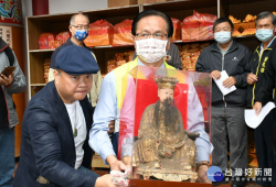 林世賢市長於文物保存建檔計畫說明會前恭迎元清觀的開基天公神尊亮相。圖彰化市公所提供 彰化市公所是全臺唯一擁有公家廟宇的政府機關,所管理的15座宮廟之中,不乏具有文化與歷史價值的文物,身兼寺廟管理人的彰化市長林世賢有鑑於有形的宮廟文物就是歷史的見證,適時適當保存維護刻不容緩,配合全國文物普查建檔計畫,進行為期二年的寺廟文物調研及建檔,22日舉行普查說明記者會。 ...... [閱讀更多]