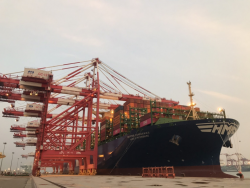 【記者張淑慧/高雄報導】全球最大貨櫃船-巴拿馬籍24,000TEU(20呎標準貨櫃單位)級「韓遠聖彼得堡」大型貨櫃輪(M/V HMM ST PETERSBURG),於109年9月25日凌晨5時,首航高雄港,停靠該港第六貨櫃中心第108-111號碼頭,臺灣港務公司高雄分公司張國明總經理特致贈首航紀念牌以示祝賀。 韓遠聖彼得堡輪清晨靠泊高雄港第六貨櫃中心 ...... [閱讀更多]