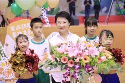 【今傳媒/記者謝榮浤報導】 慶祝兒童節活動,台中市政府教育局今(29)日在市立中港高中體育館,舉辦112年模範兒童暨健康兒童表揚活動,全市250所公私立國小六年級模範兒童及年級健康兒童代表,共1,255位品學兼優的學生獲獎,市長盧秀燕到場逐一與孩子們合照。盧市長致詞表示,與孩子合影時間寶貴,她僅以10字勉勵祝福孩子們,「恭喜大家、繼續努力加油!」 今日表揚活動現場佈...... [閱讀更多]