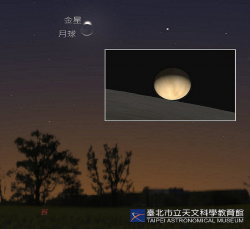 (圖/台北市立天文館提供) 今年3月天象特別精彩,除了春分的黃道光、穀神星衝等,肉眼可見「月掩金星」更是數十年來難得一見的奇景,不可錯過。台北市立天文館表示,3月24日傍晚19時52分前後,台灣將可見到「月掩金星」奇景(各地發生時間約有數分鐘差異),明亮的金星在短短十餘秒內瞬間消失於眉月邊緣,如日食般神奇令人驚嘆!錯過就得等到2063年。 天文館指出,其實...... [閱讀更多]