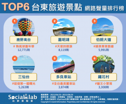台東擁有壯麗的自然景觀以及原住民文化的相襯,交織成一座豐富人文薈萃的城市,成為國人選擇旅遊景點時的熱門選項之一,加上交通的便捷性,活絡了台東的經濟與觀光。 《Social Lab社群實驗室》本次透過《OpView社群口碑資料庫》追蹤近三個月內「台東景點」話題的網路聲量表現,帶您了解有關網友熱議的台東六大旅遊景點排行。 「鹿野高台」熱氣球嘉年華超熱鬧 「嘉明湖...... [閱讀更多]