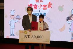 記者黃俊育 / 新北報導 新北市政府為推廣惜食教育,舉辦惜食小當家徵影比賽,經評審出20組作品獲獎,於13日在市府一樓頒獎。獲得首獎的是新市國小郭開元同學,因學校推廣食農課程進而投入惜食烹飪,他以NG醜蔬果做成雞肉蘑菇燉飯,獲得評審青睞,獨得3萬元獎金,他說要捐1萬元給育幼院,1萬元給學校持續推廣食農教育,獲得與會者熱烈的掌聲鼓勵。 代表侯友宜市長頒獎的祕書長林祐賢表示,新北市...... [閱讀更多]