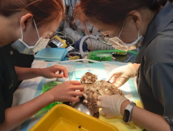 【焦點時報/記者蔡宗武報導】壽山動物園在今年3月份陸續接獲領角鴞(小型貓頭鷹)救援任務,其中原本住在某大學地下室的領角鴞一家三口與之前收養的幼鳥,經過動物園收養和親鳥悉心照顧後,在4月已經重回大自然懷抱,相較之下另一隻折翼的領角鴞就沒這麼幸運。動物園為了讓骨折的左翅儘速復位,特別與中興動物醫院獸醫團隊共同合作進行手術,經過獸醫師的治療後,目前領角鴞翅膀內的骨釘已拔除,園方人員正努力地...... [閱讀更多]