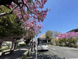 台南最美公車站-大光國小風鈴木盛開 民眾搭車搶拍網美照