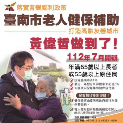 在排富條件下 黃偉哲宣佈7月起補助老人健保費