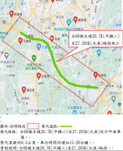 台66線20.7K至27.205K路段將封閉 請注意交通管制